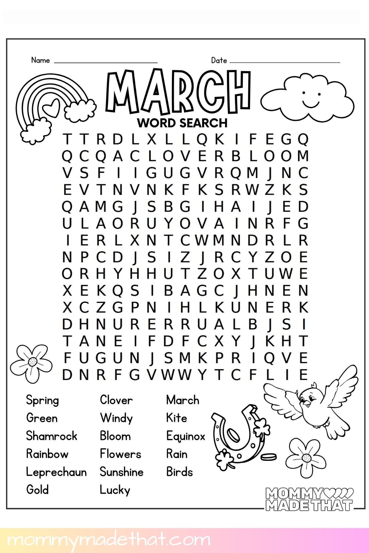 March Word Search Free Printable