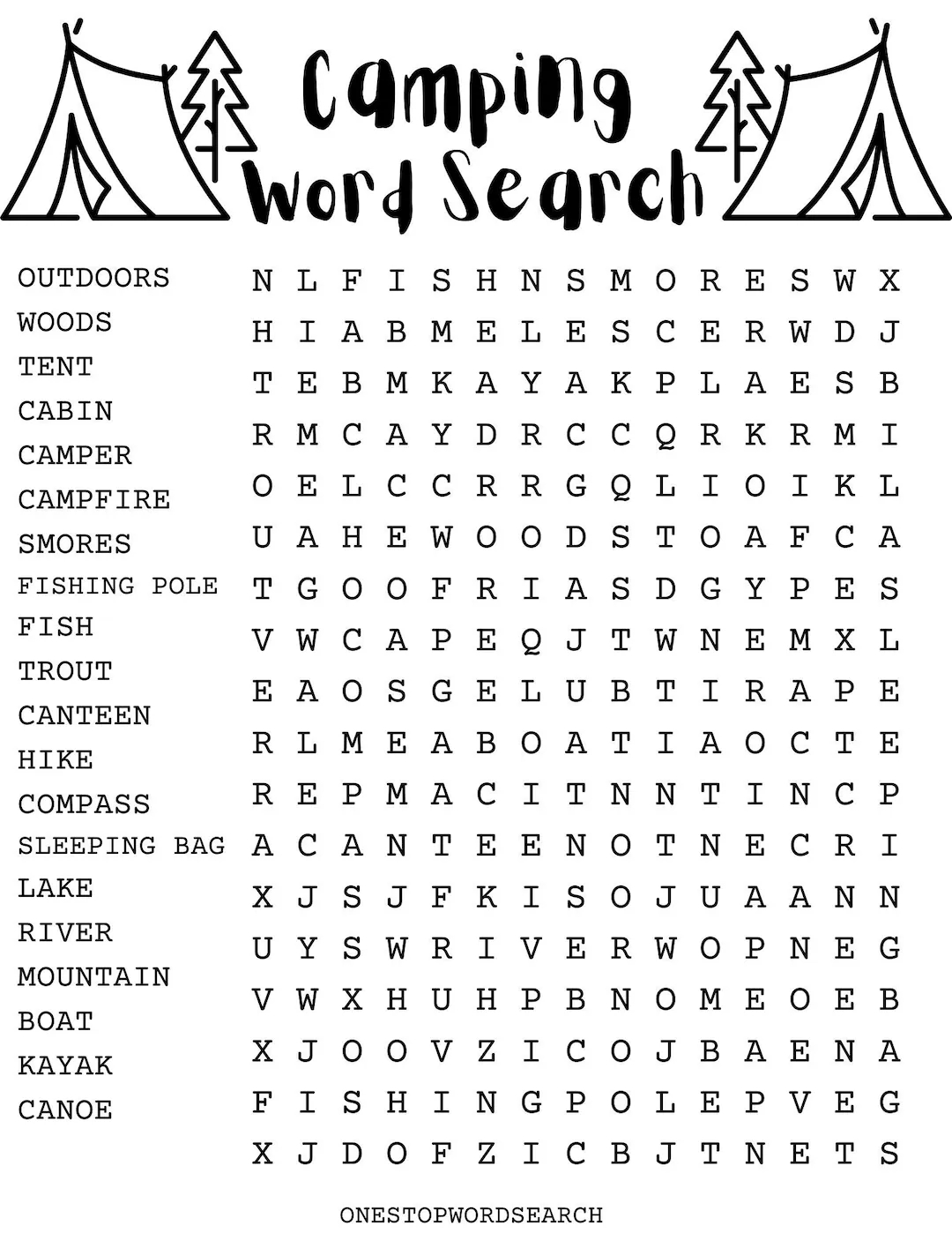 Camping Word Search Puzzle With Answer Sheet Camping Games Camping Activities Outdoors Etsy