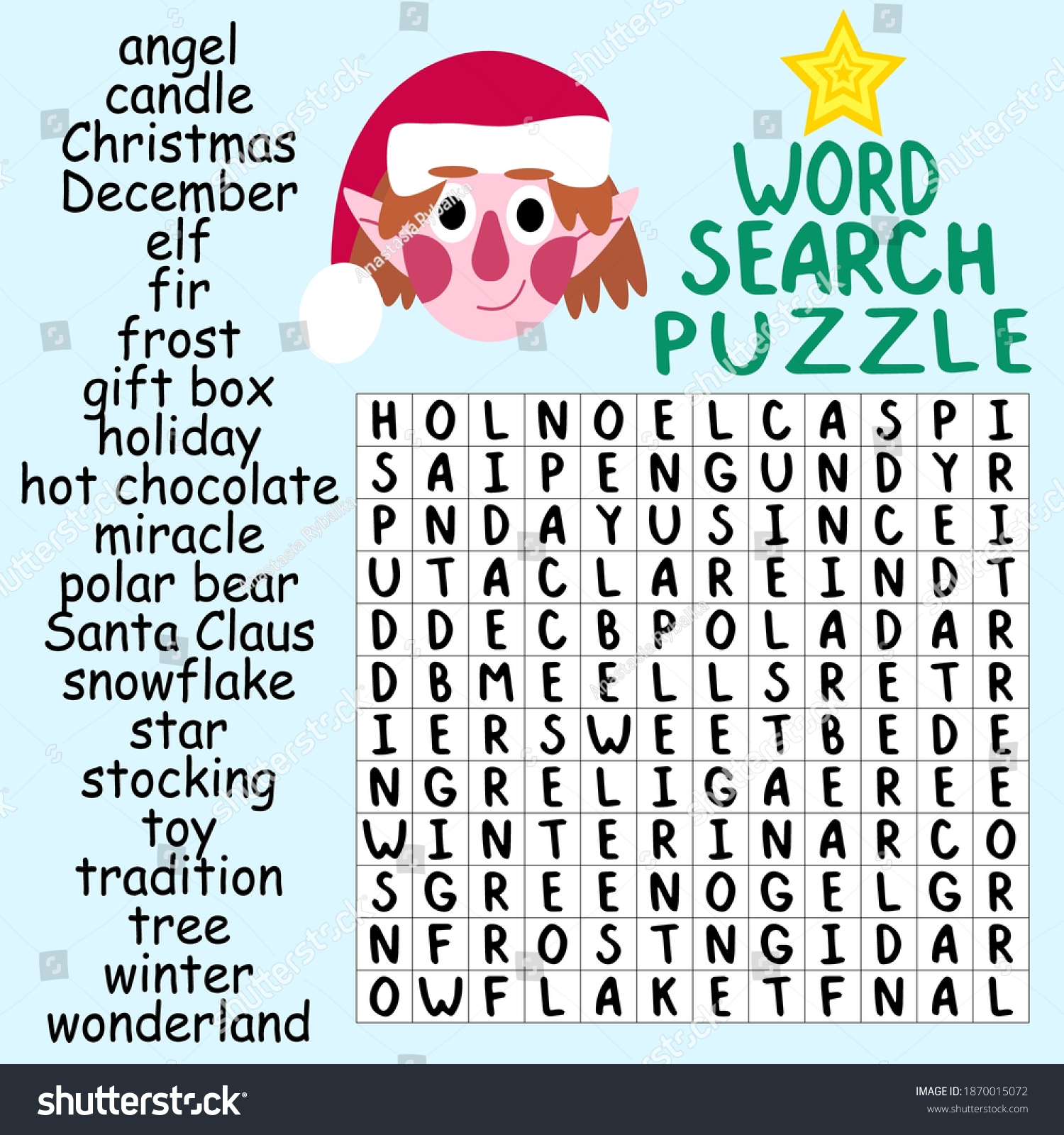 Word Search Puzzle Christmas Children Pastime Stock Vector Royalty Free 1870015072 Shutterstock