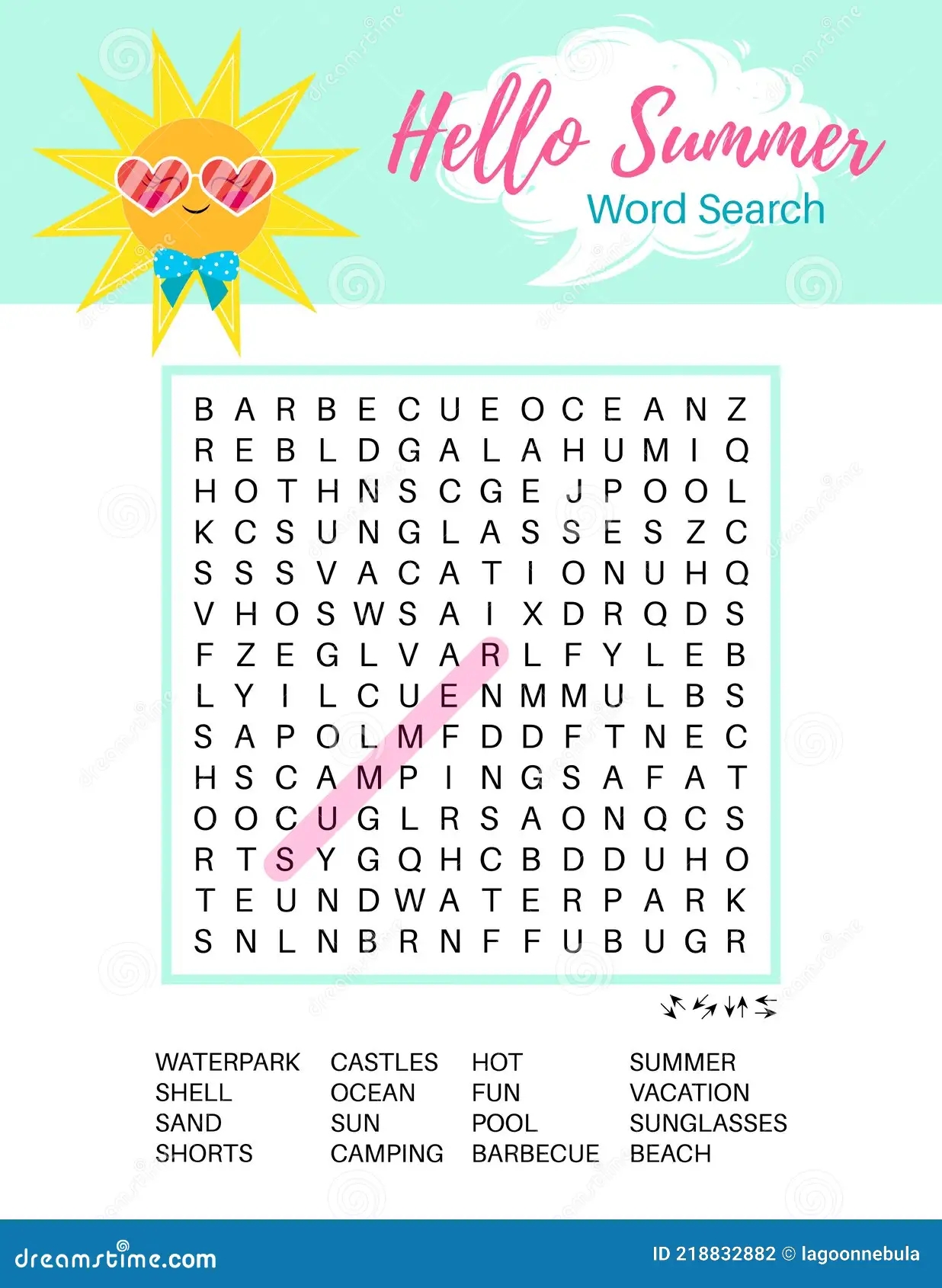 Summer Word Search Puzzle Educational Game Crossword Suitable For Social Media Post Party Card Printable Colorful Worksheet F Stock Vector Illustration Of Babies Educational 218832882
