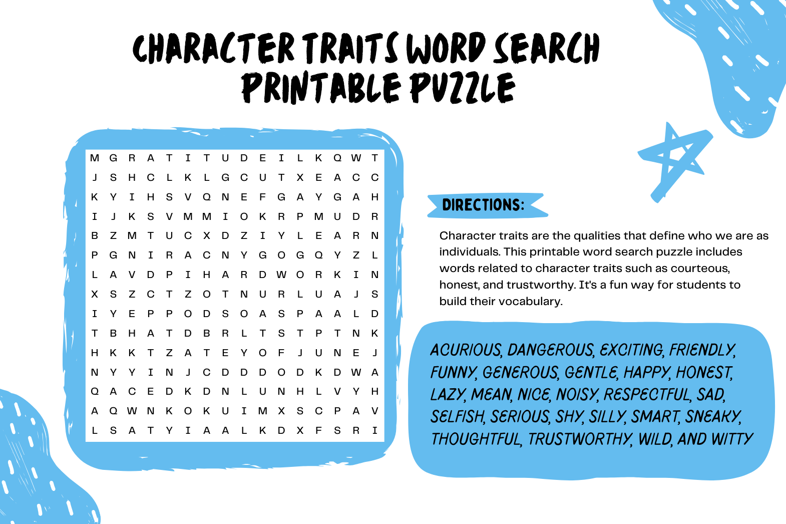 Buy High quality Stock Photo Graphics Fonts Design Templates Character Traits Word Search Printable Puzzle