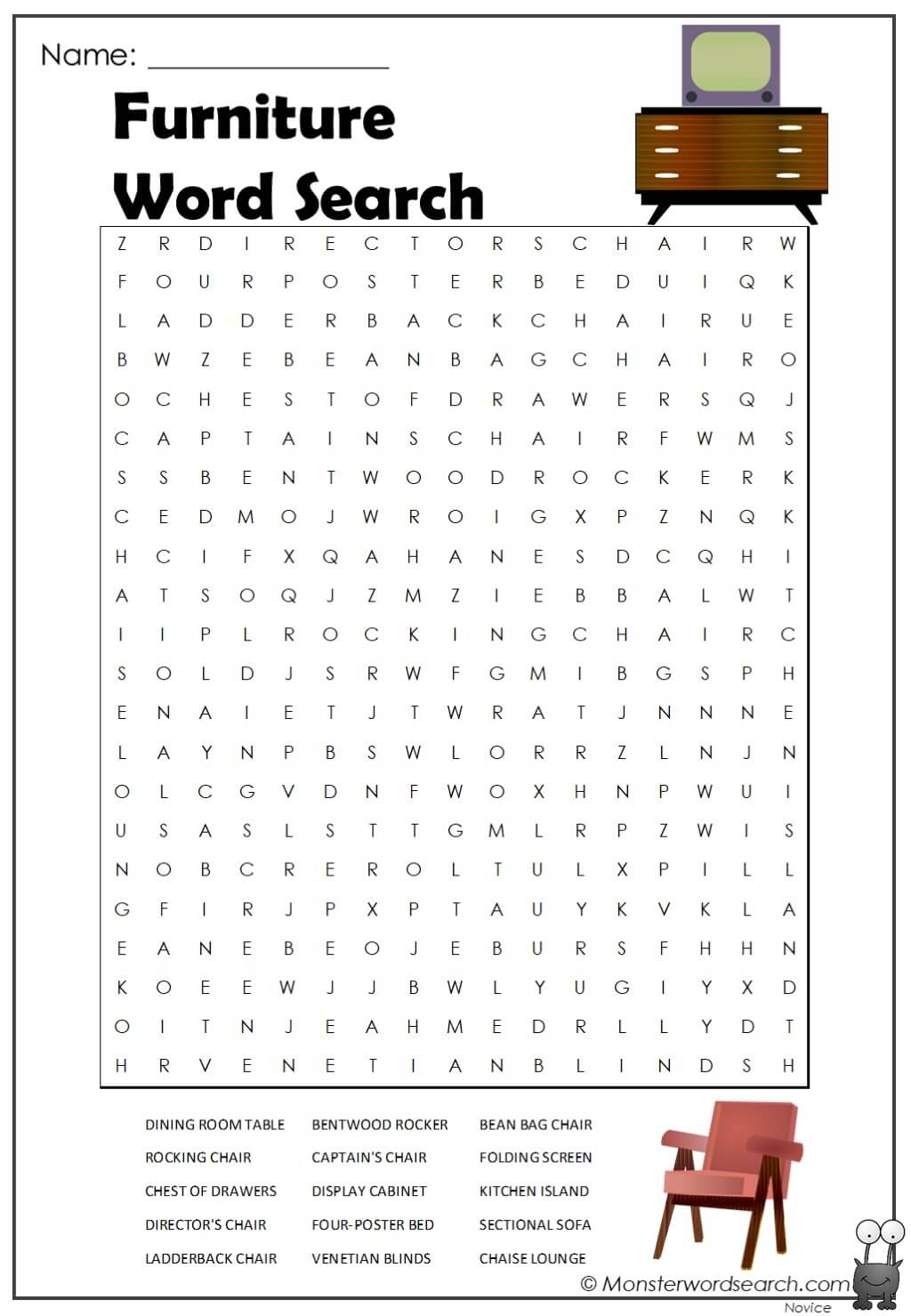 Furniture Word Search Monster Word Search