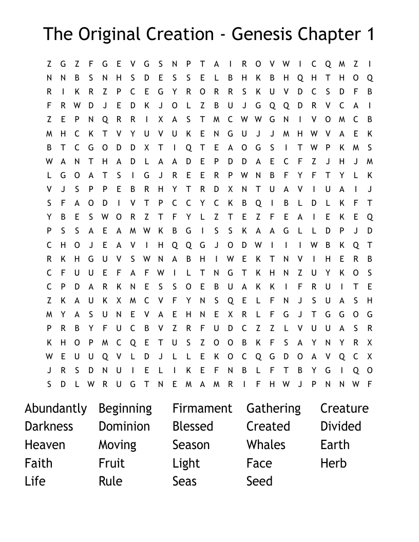 The Original Creation Genesis Chapter 1 Word Search WordMint