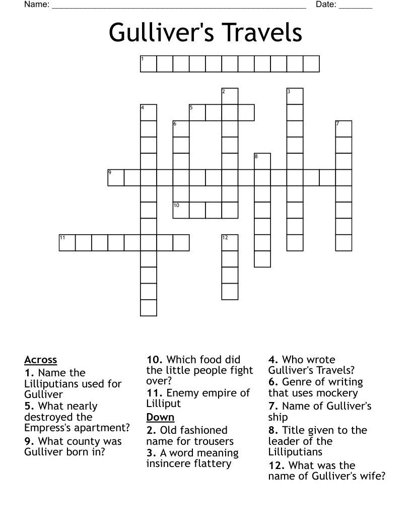 Gulliver s Travels Crossword WordMint