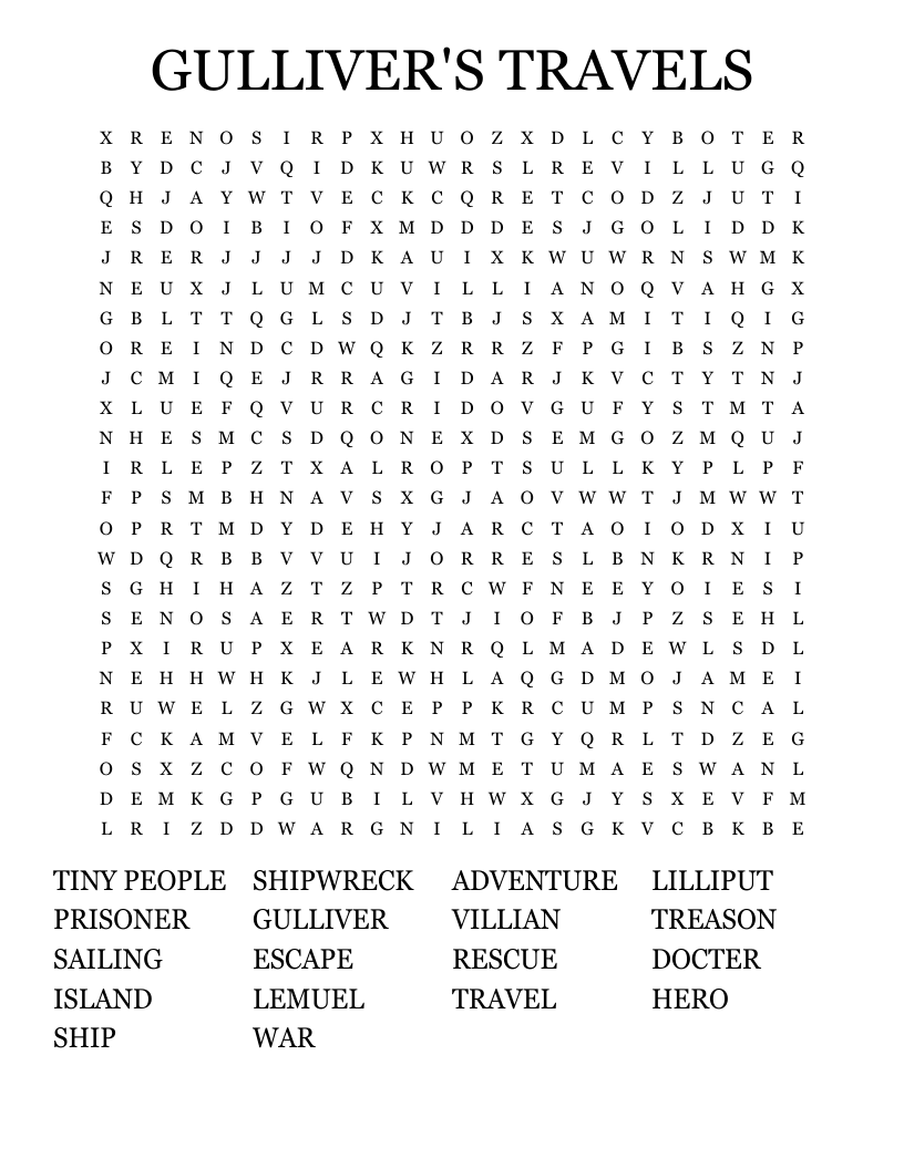 Are you a fan of Jonathan Swift’s classic novel Gulliver’s Travels? If so, you’re in for a treat! We’ve created a fun and challenging word search printable based on this beloved literary work. Whether you’re a student, teacher, or just a book lover, this word search is sure to entertain and test your knowledge of the story.