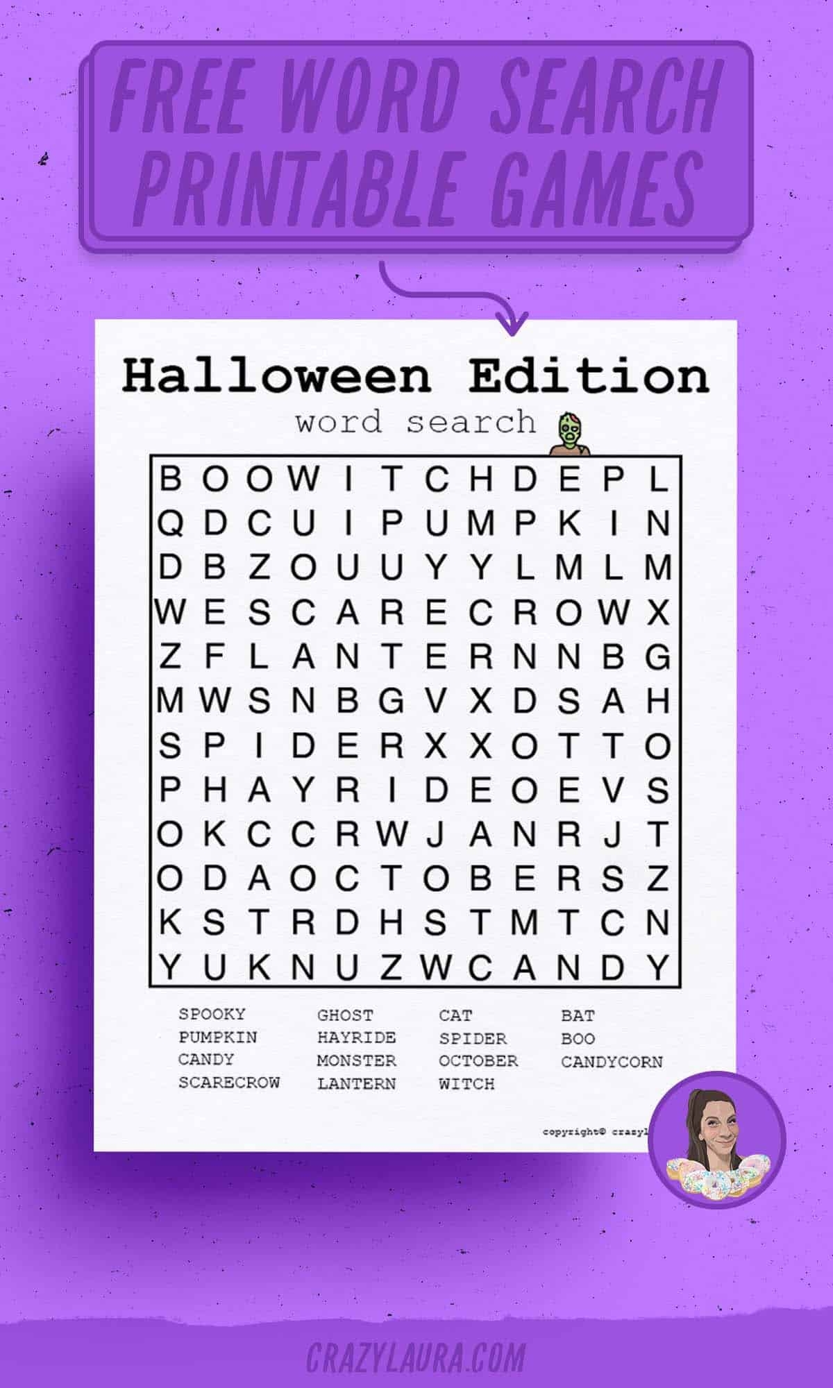 Free Halloween Word Search Printable Game Sheets Crazy Laura