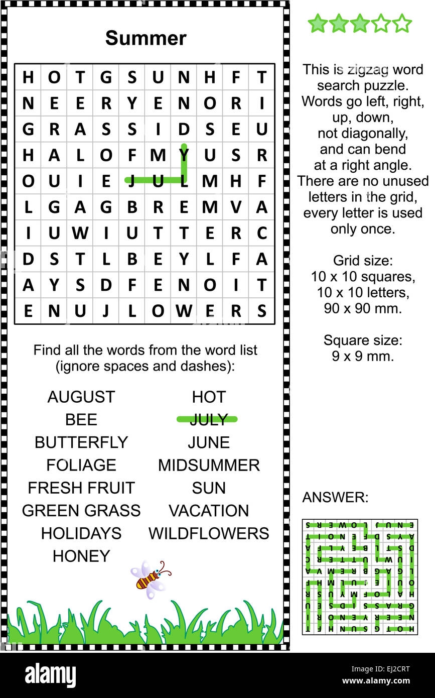 Summer Themed Word Search Puzzle suitable Both For Kids And Adults Answer Included Stock Photo Alamy