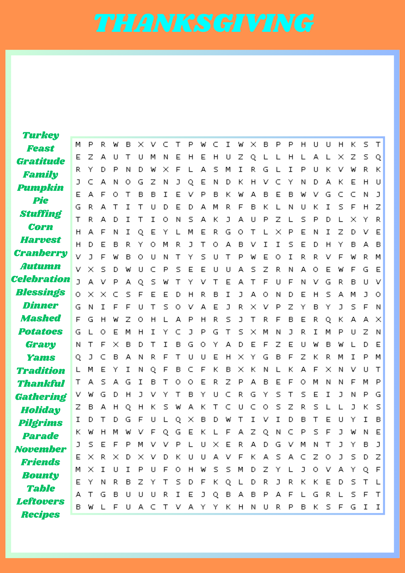Thanksgiving Word Search Free Printable Puzzles Free Printables Monograms Design Tools Patterns DIY Projects