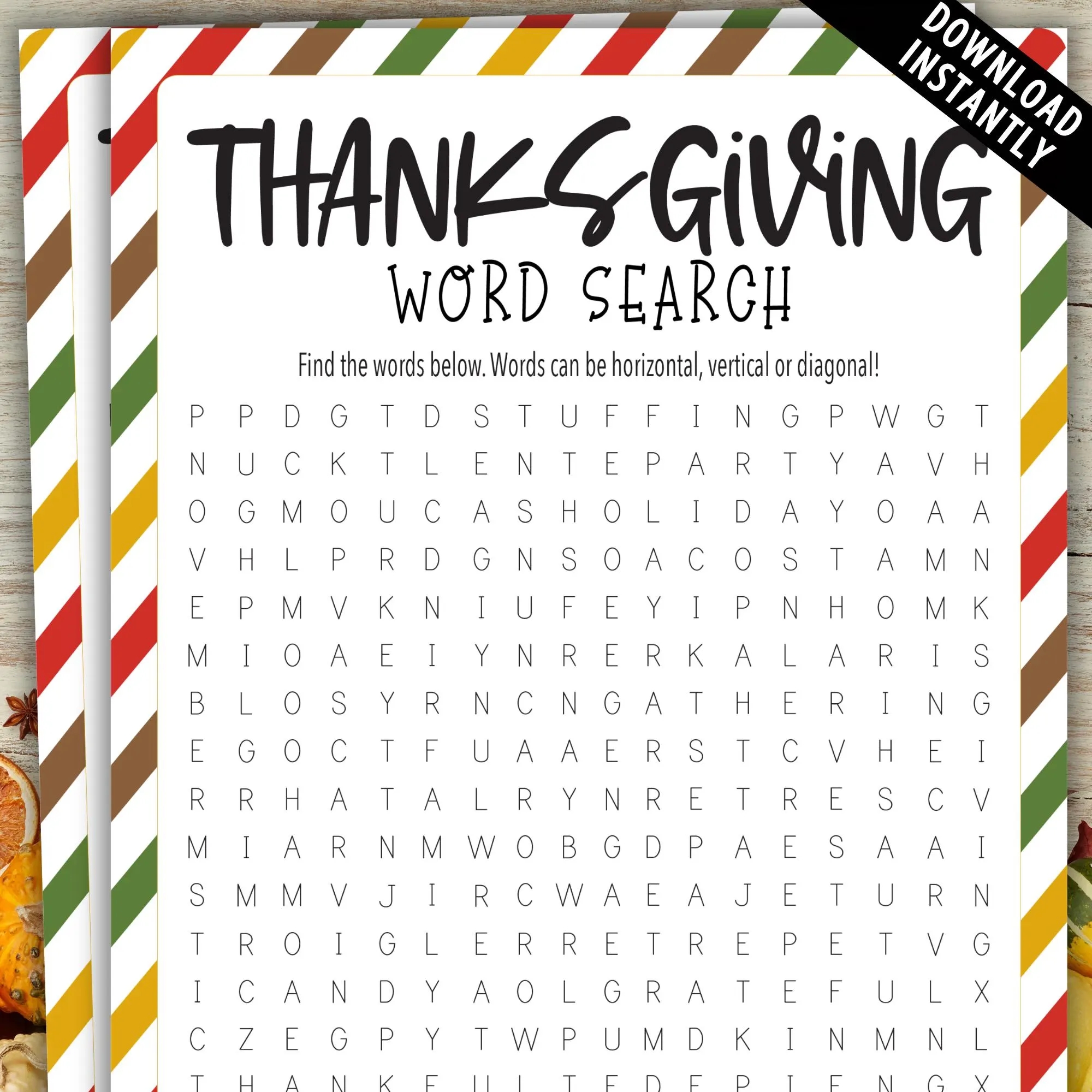 Thanksgiving Word Search With Border Holiday Seek And Find Word Game Thanksgiving Gathering Word Puzzle Thanksgiving Party Word Find Etsy