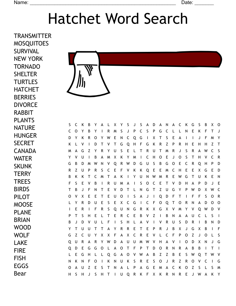 With words related to the classic novel “Hatchet” by Gary Paulsen hidden in the grid, you’ll have to search high and low to find them all. It’s a fun and engaging way to revisit the story and test your memory!