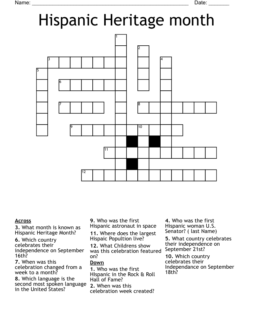 Hispanic Heritage Month Crossword Word Search Puzzle Made By Teachers