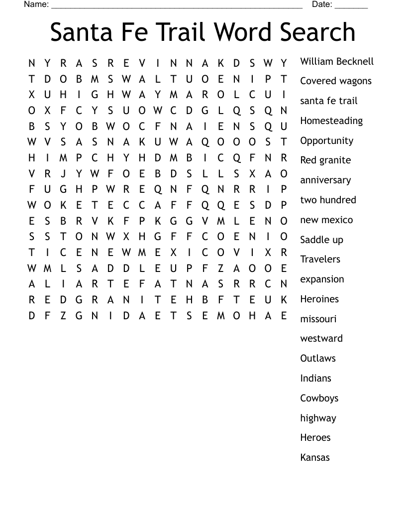 Santa Fe Trail Wordsearch WordMint