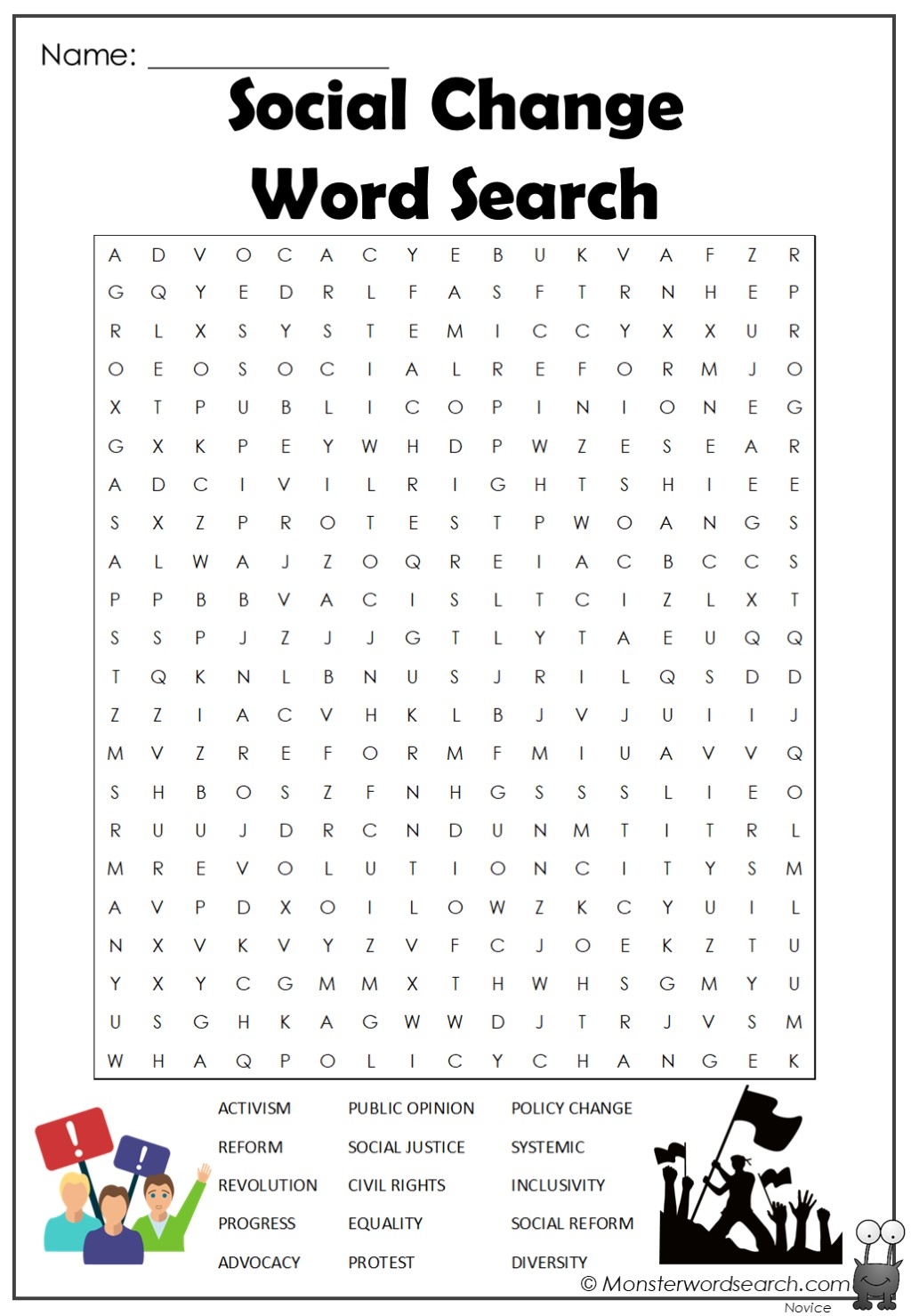 Social Change Word Search Monster Word Search