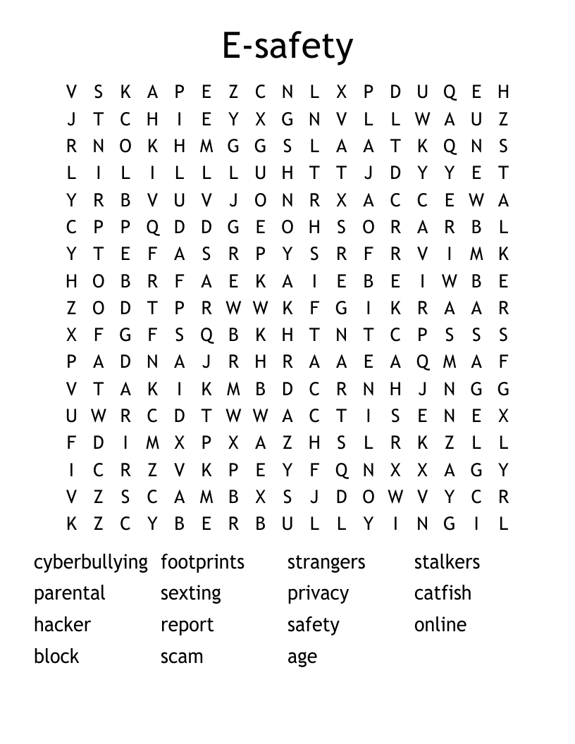 E safety Word Search WordMint