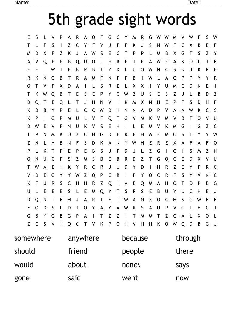 5th Grade Sight Words Word Search WordMint