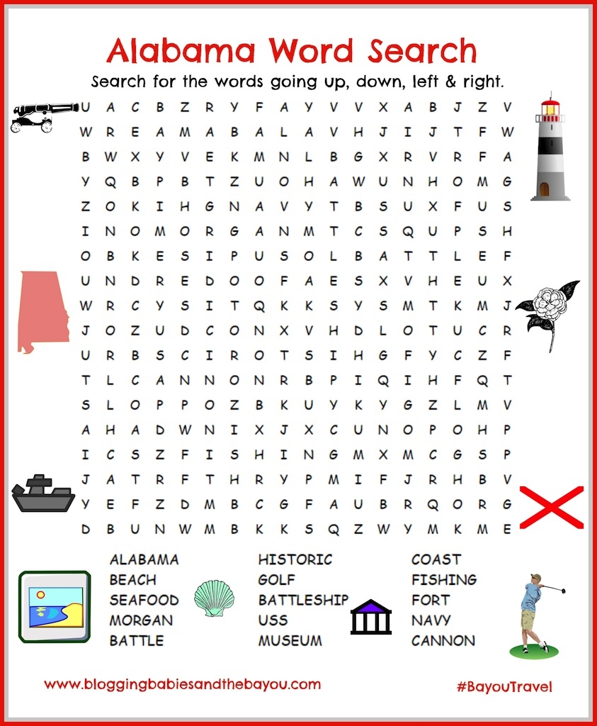 Alabama Gulf Shores Orange Beach Word Search Printable For Children BayouTravel