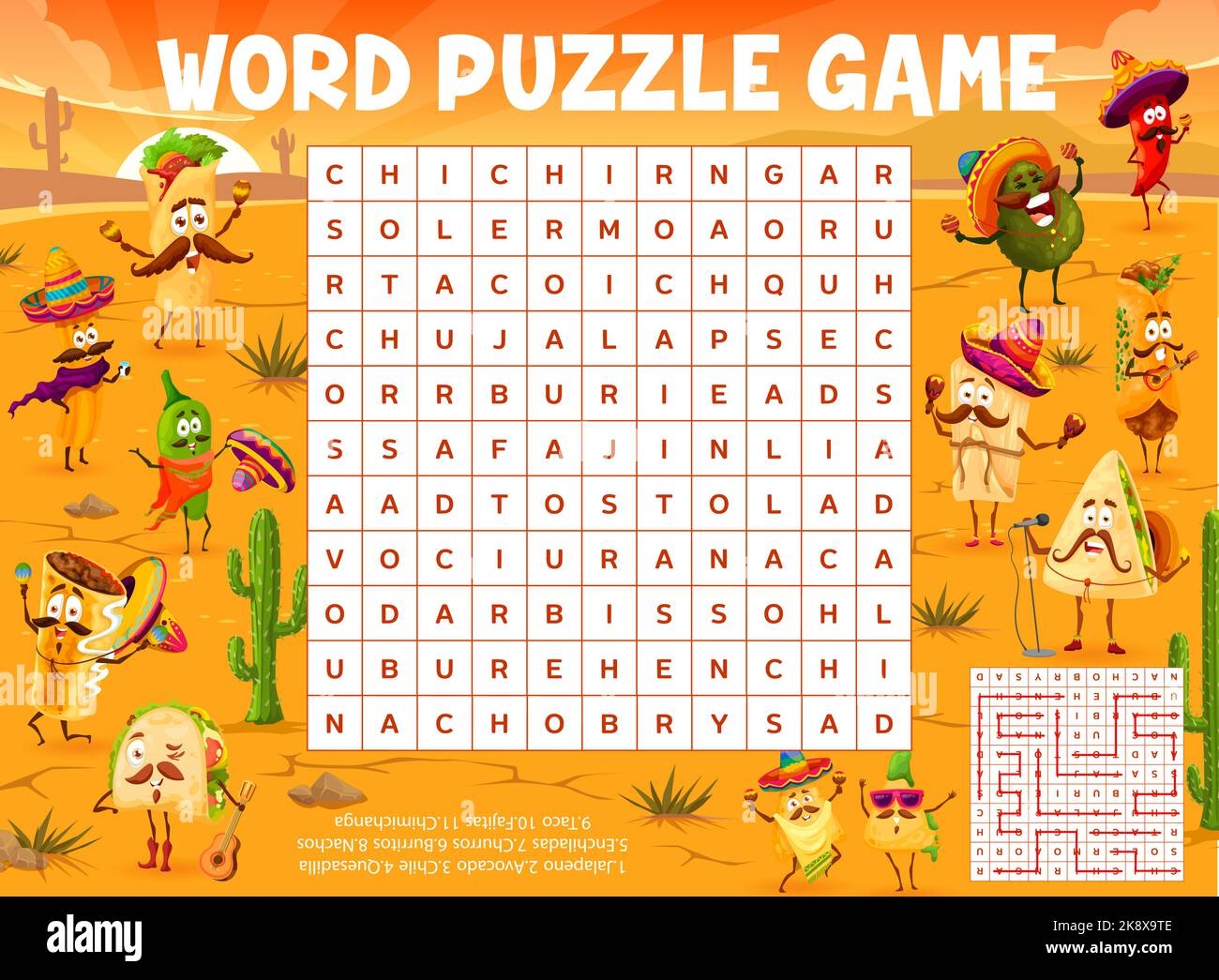 Cartoon Food Characters In Mexican Desert Word Search Puzzle Game Vector Worksheet Kids Quiz Grid Or