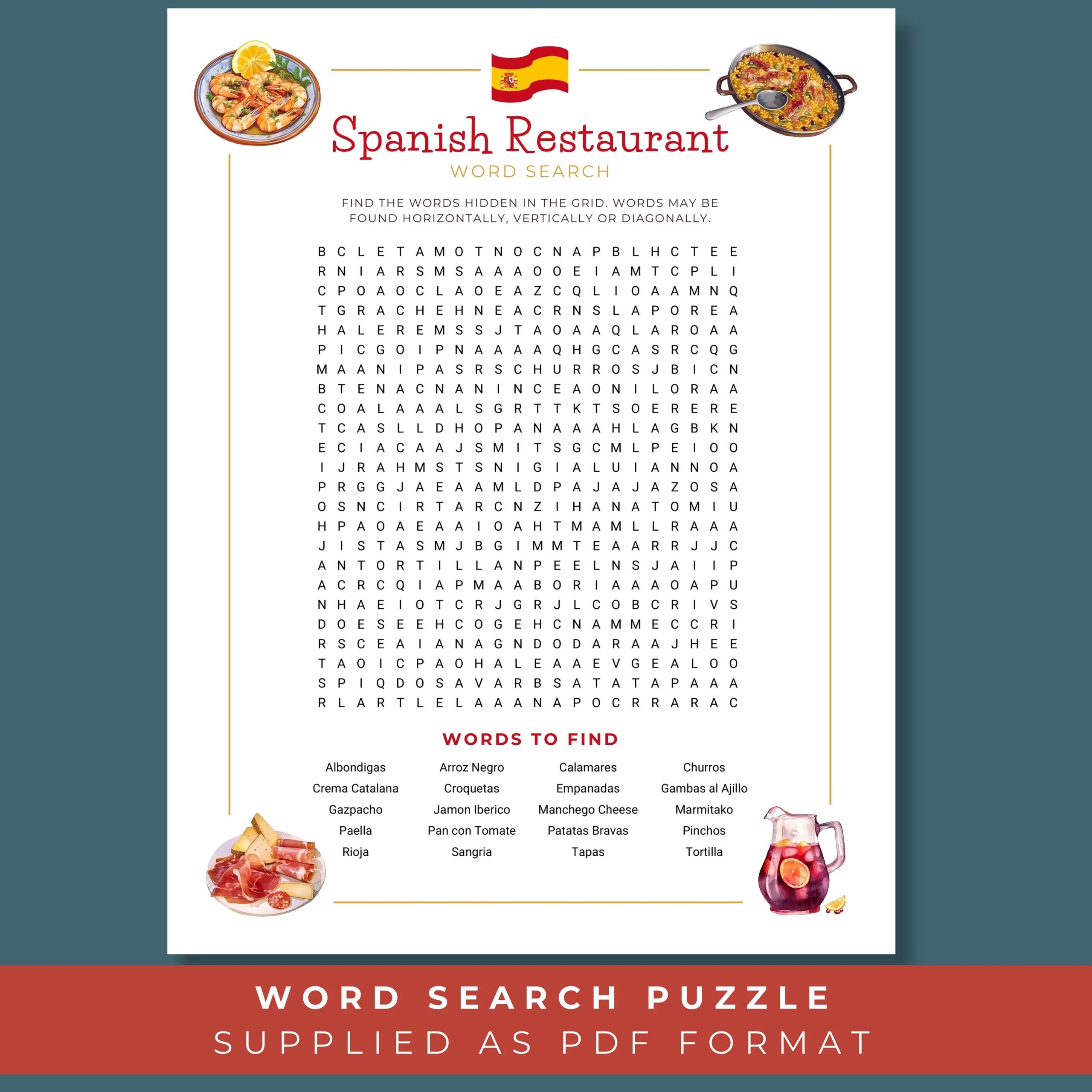 Spanish Food Word Search Tapas Night Games Printable Puzzle Game Spanish Theme Party Cookery Class Classroom Activity Spain Holidays Etsy