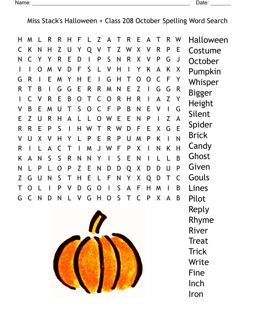 Miss Stack s Halloween Class 208 October Spelling Word Search WordMint