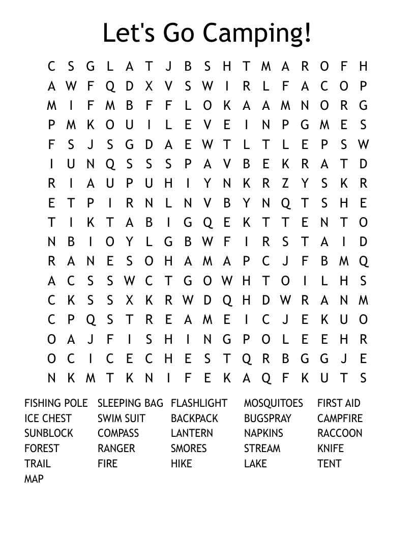 So, next time you’re packing for a camping trip, don’t forget to throw in some Let’s Go Camping Printable Word Searches. They are a simple yet entertaining addition to your outdoor experience that will surely create lasting memories for years to come.