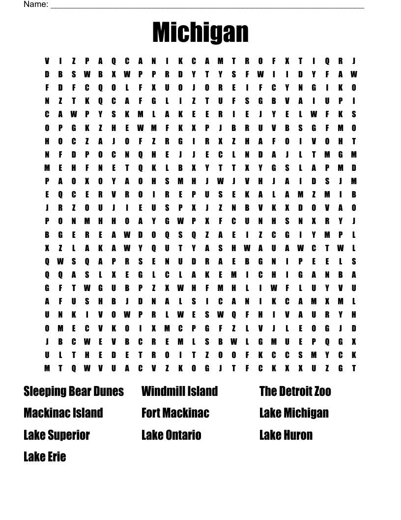 So next time you’re looking for a fun and educational activity to do in Michigan, be sure to print out a Michigan word search puzzle. It’s a great way to learn more about the state while having a great time. Happy puzzling!
