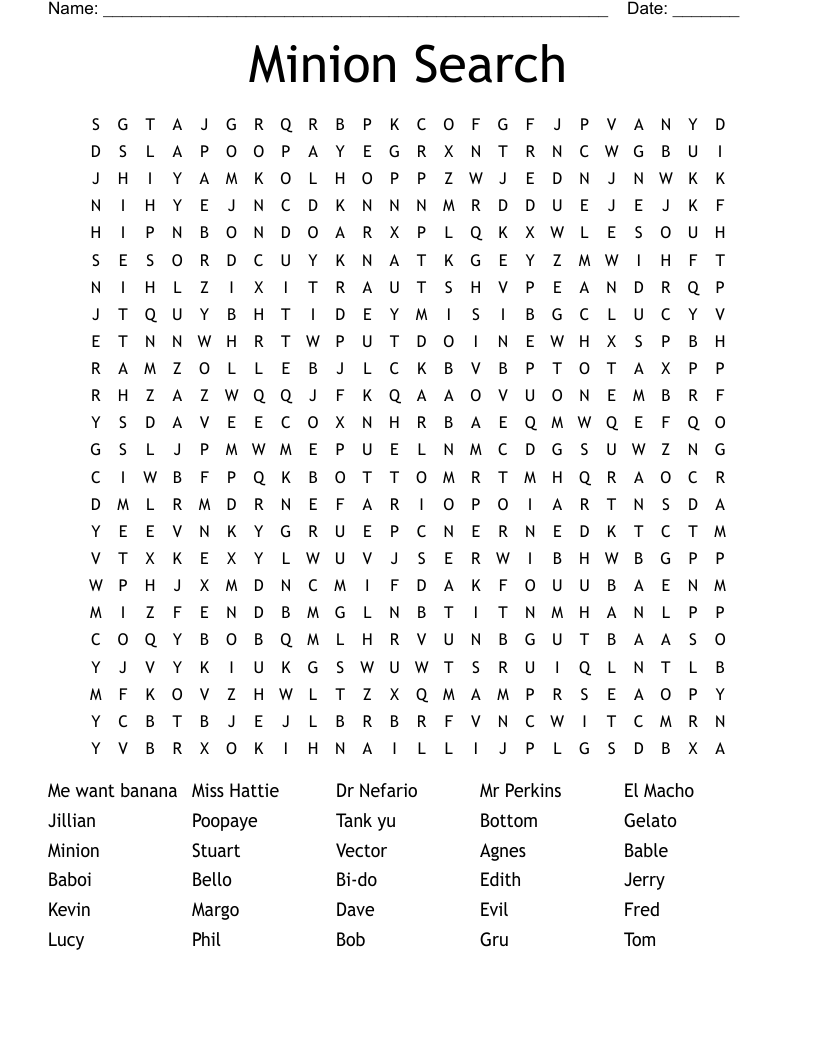 Whether you’re a casual fan or a die-hard enthusiast of the Minions, this word search is sure to bring a smile to your face. It’s a wonderful activity to enjoy during a lazy afternoon, a family game night, or a Minion-themed party. So, grab your pencil and get ready to embark on a word-hunting adventure with these lovable yellow creatures!