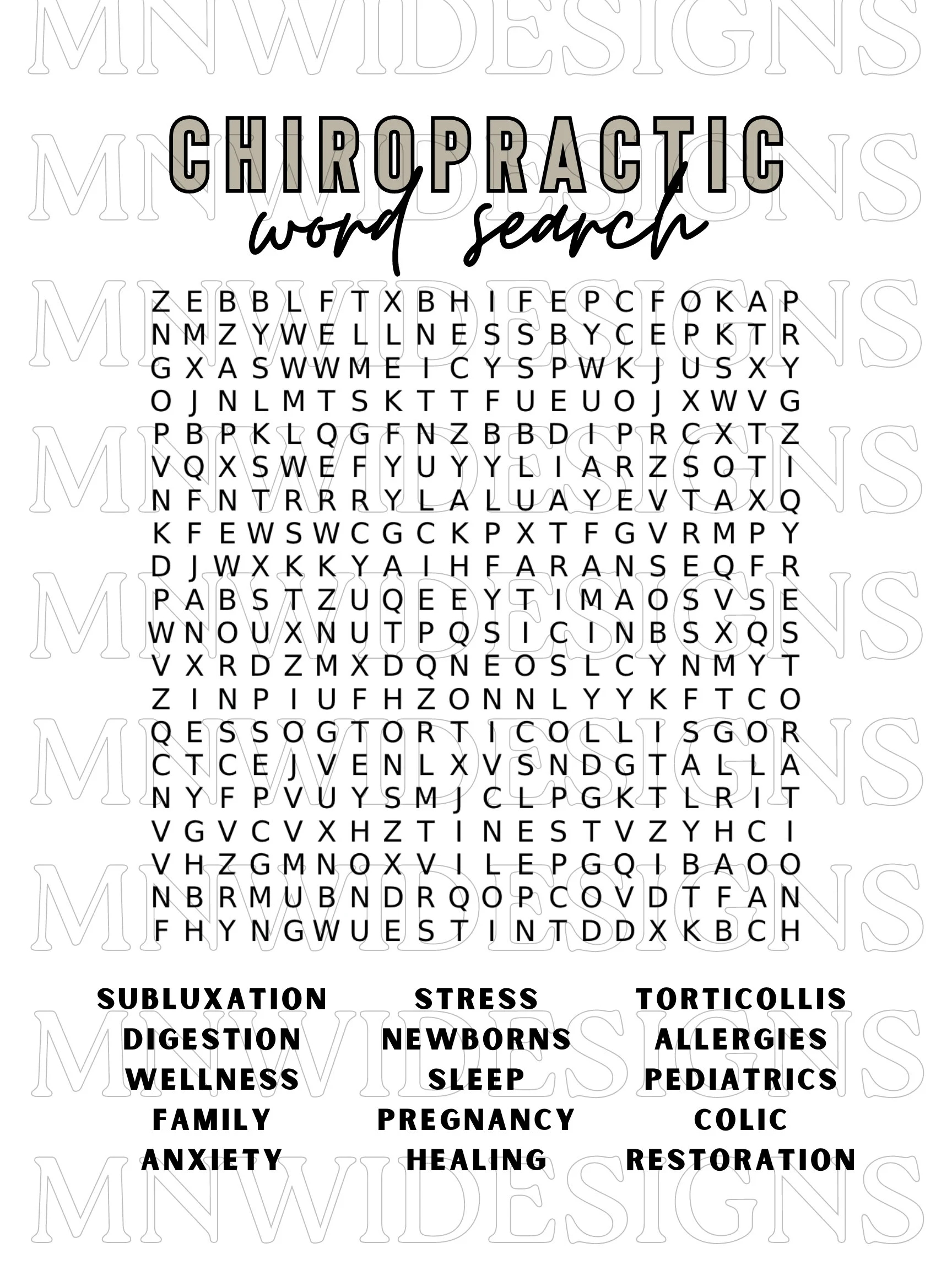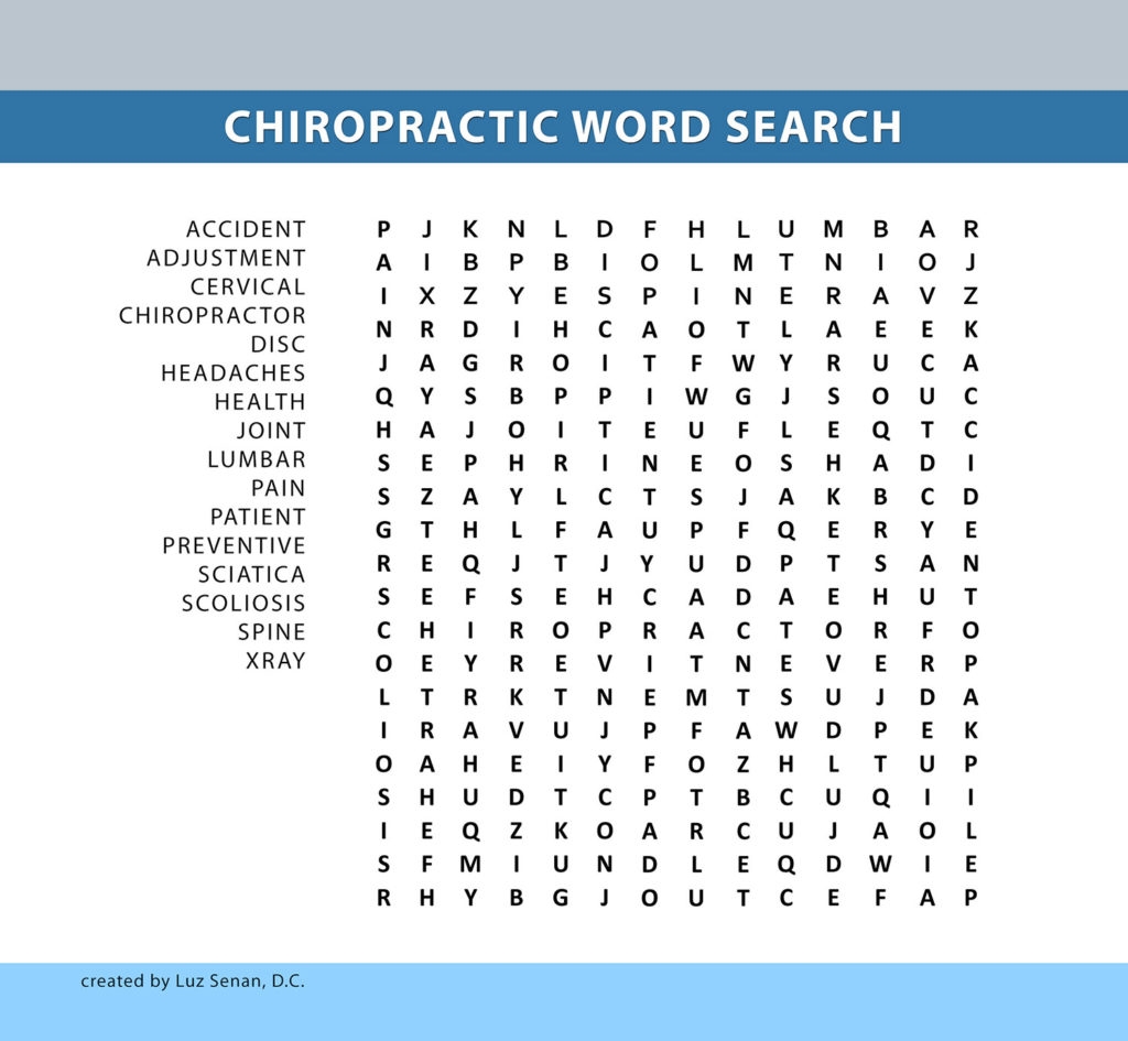 Chiropractic Word Search Absolute Injury And Pain Physicians