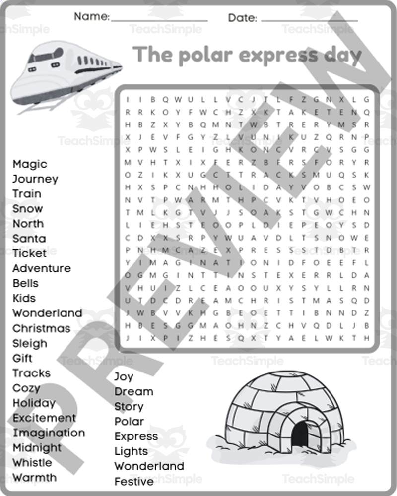 THE POLAR EXPRESS DAY Word Search Puzzle Worksheets Activity By Teach Simple