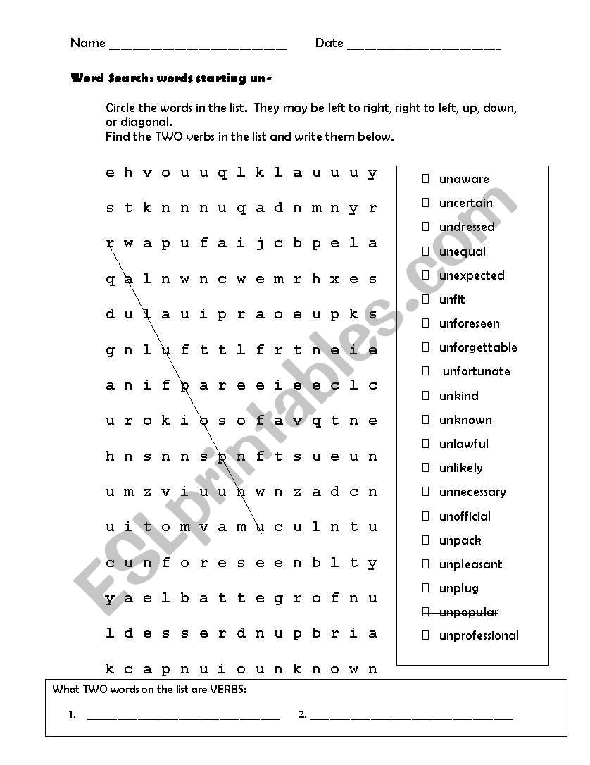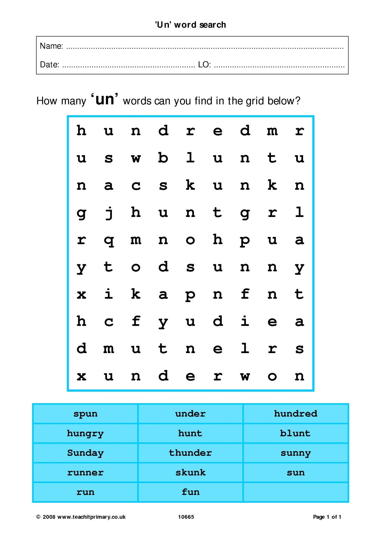 Prefix Un Wordsearch Quickworksheets Worksheets Library