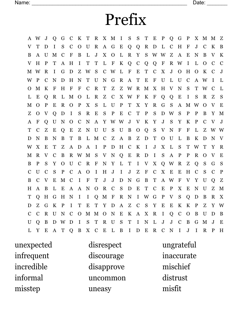 Prefixes Worksheets Prefix Word Search Printable