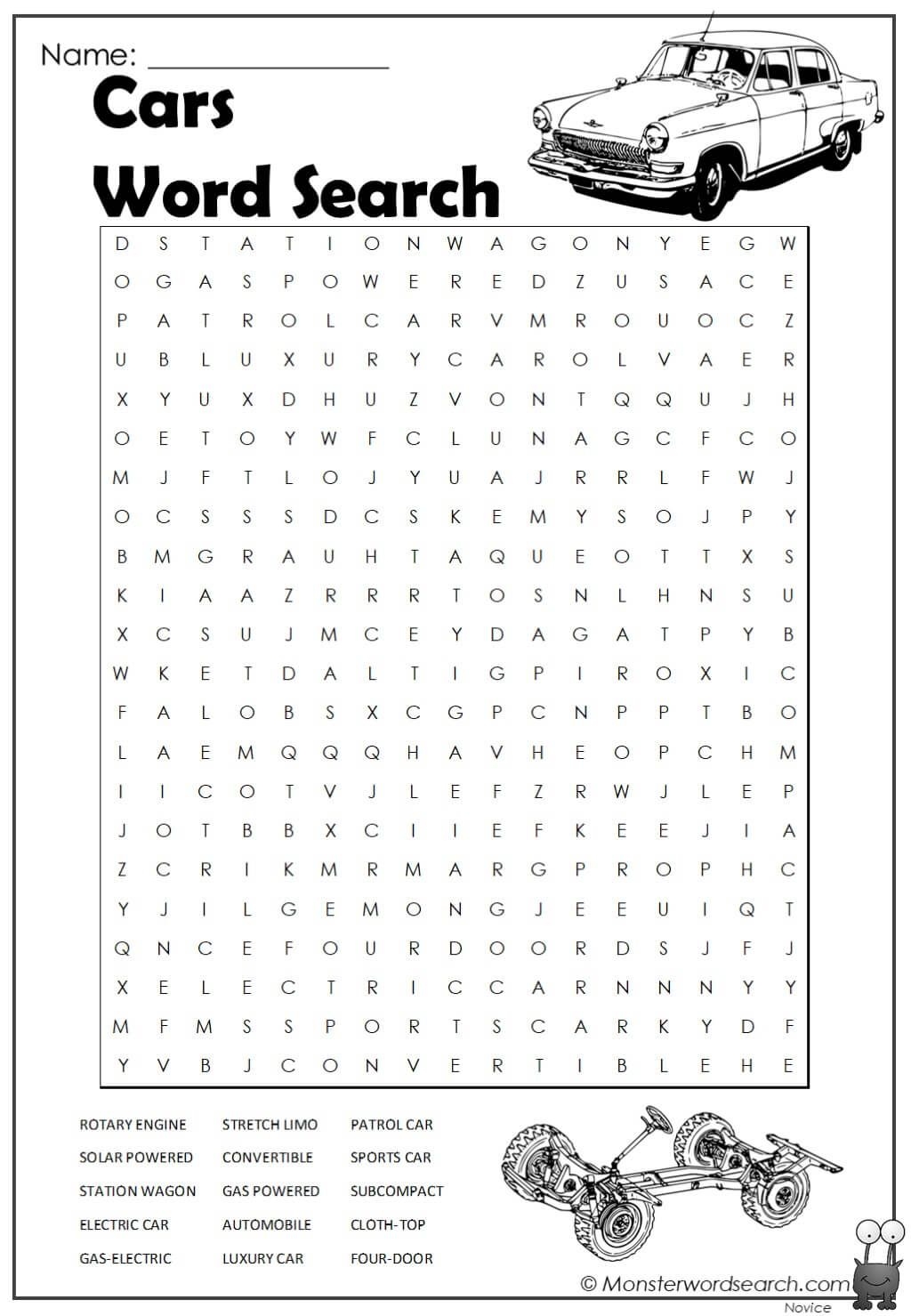 Car Parts Word Search Monster Word Search
