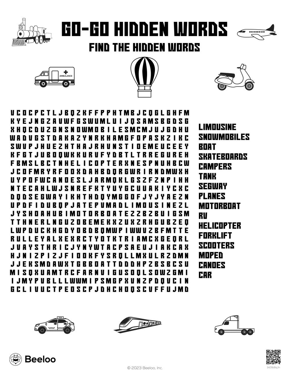 Types Of Vehicles Word Search WordMint