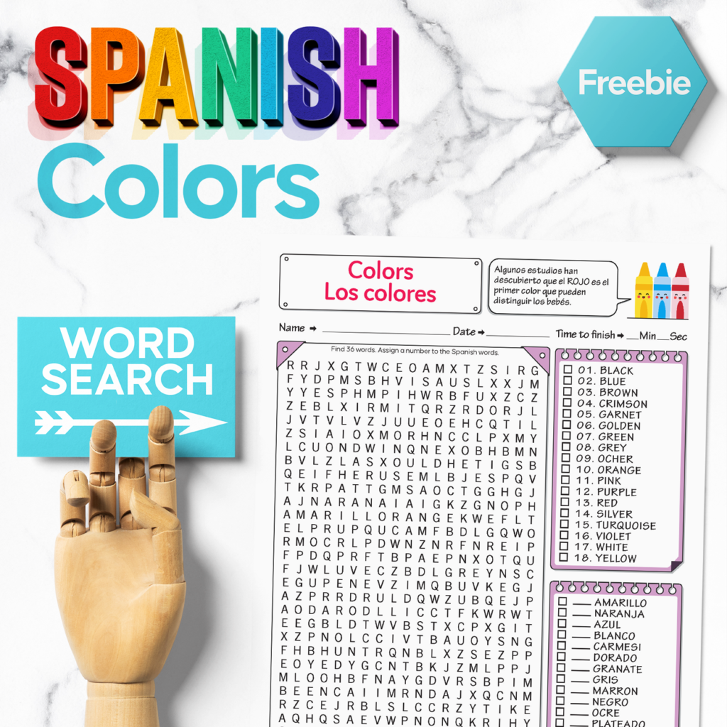 Spanish Colors Word Search Free Printable To Learn The Colors