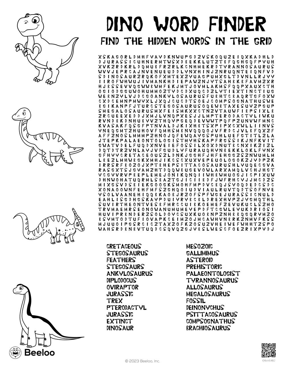 Our printable dinosaur word search features a variety of dinosaur names hidden within a grid of letters. Can you find them all? From T-Rex to Triceratops, you’ll have a roaring good time uncovering these ancient creatures. Challenge yourself or compete with friends to see who can find the most words!
