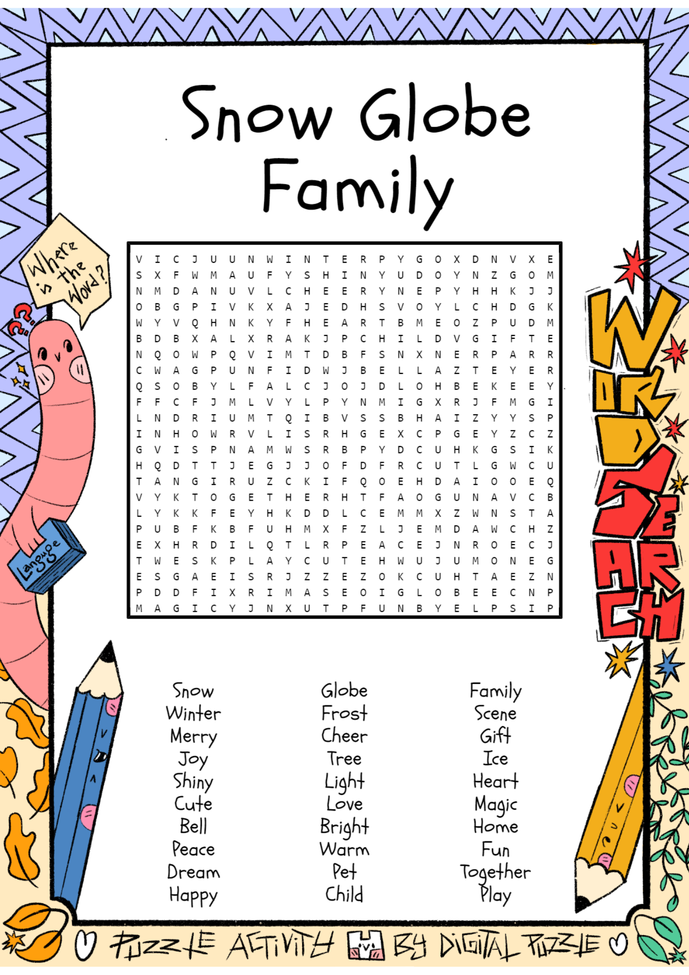 Snow Globe Family Word Search Puzzle Worksheet Activity Made By Teachers