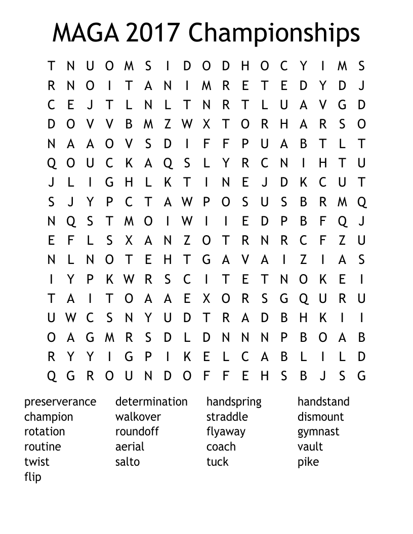Not only is this word search a fun activity, but it’s also a great way to learn new gymnastics terms. You might even discover some words you’ve never heard of before!