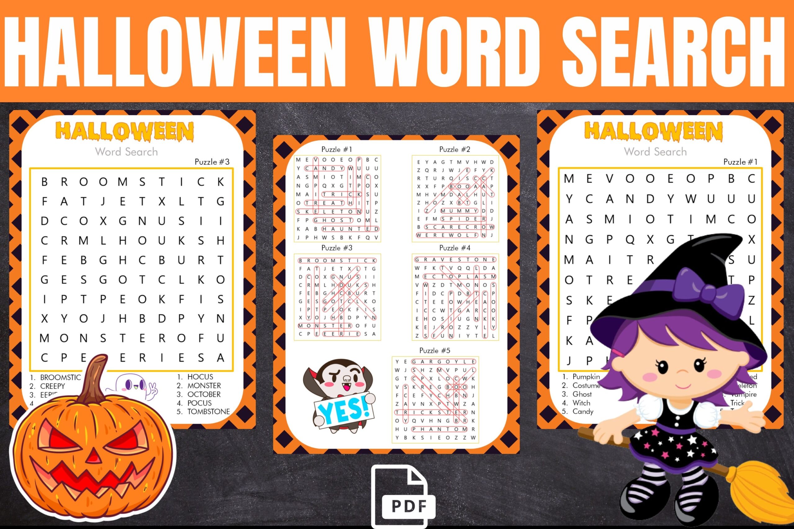 These word searches are a great way to challenge your brain while also getting into the Halloween mood. Whether you’re hosting a Halloween party or just want to pass the time on a cozy autumn evening, these puzzles are sure to entertain.
