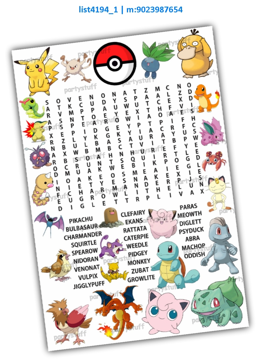 Pokemon Inspired Word Search Game Word Find Game Pokemon Party Game Pocket Monsters Printable Game Pokemon Birthday Instant Download Etsy