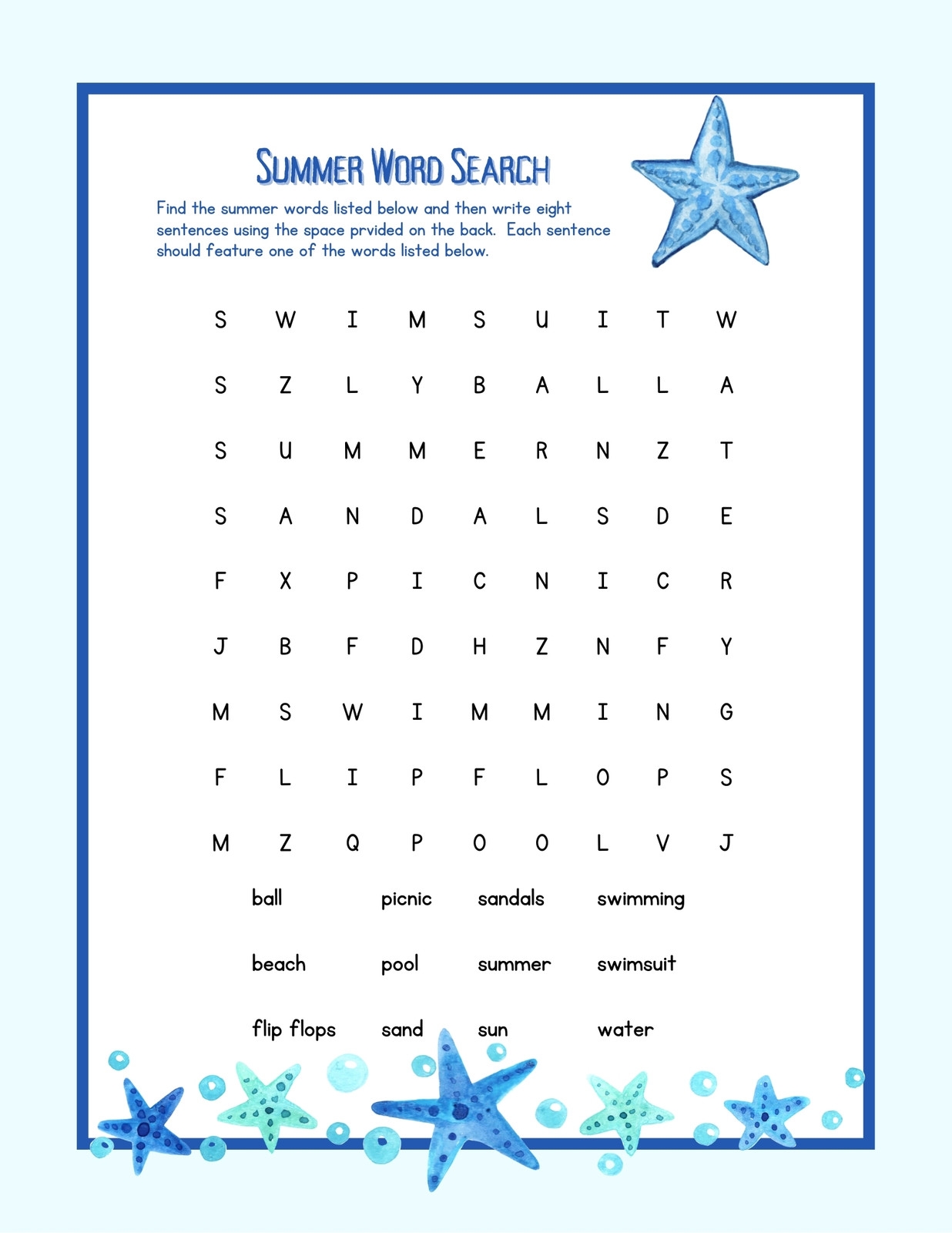 Free Printable Summer Word Search
