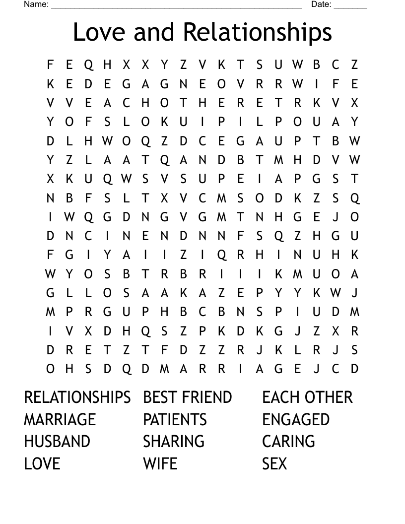 LOVE AND SEXUAL RELATIONSHIPS Word Search WordMint