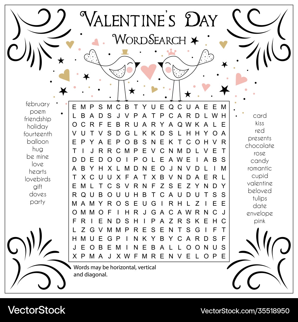 Valentines Day Word Search Puzzle Royalty Free Vector Image