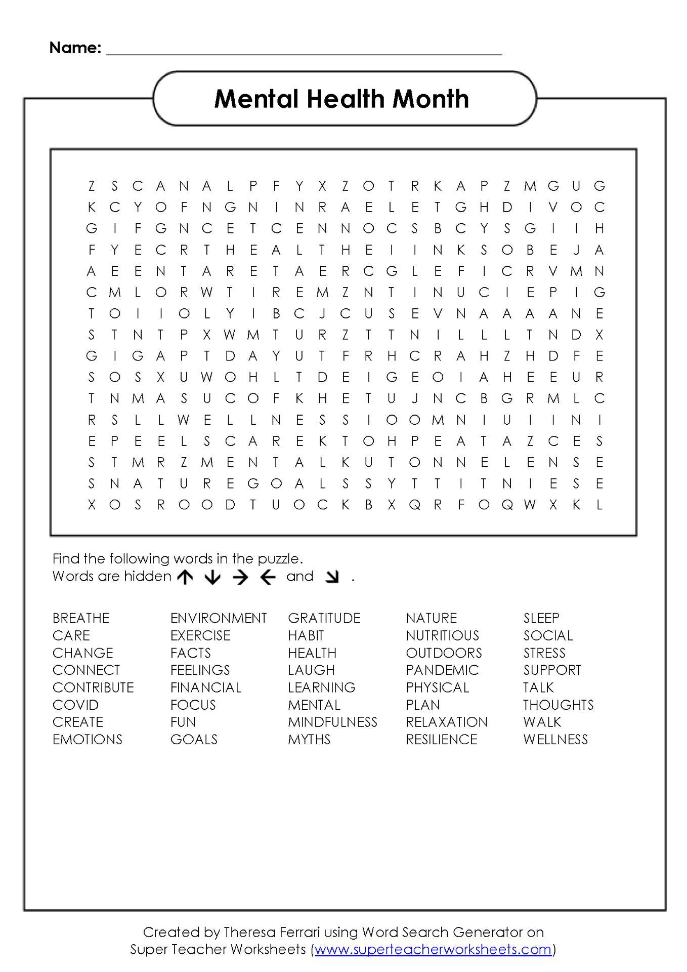 Next time you’re feeling stressed or overwhelmed, remember to take a moment for yourself and try a Printable Mental Health Word Search. You deserve to prioritize your mental health and well-being, and this simple activity is a great way to do just that. Happy searching!