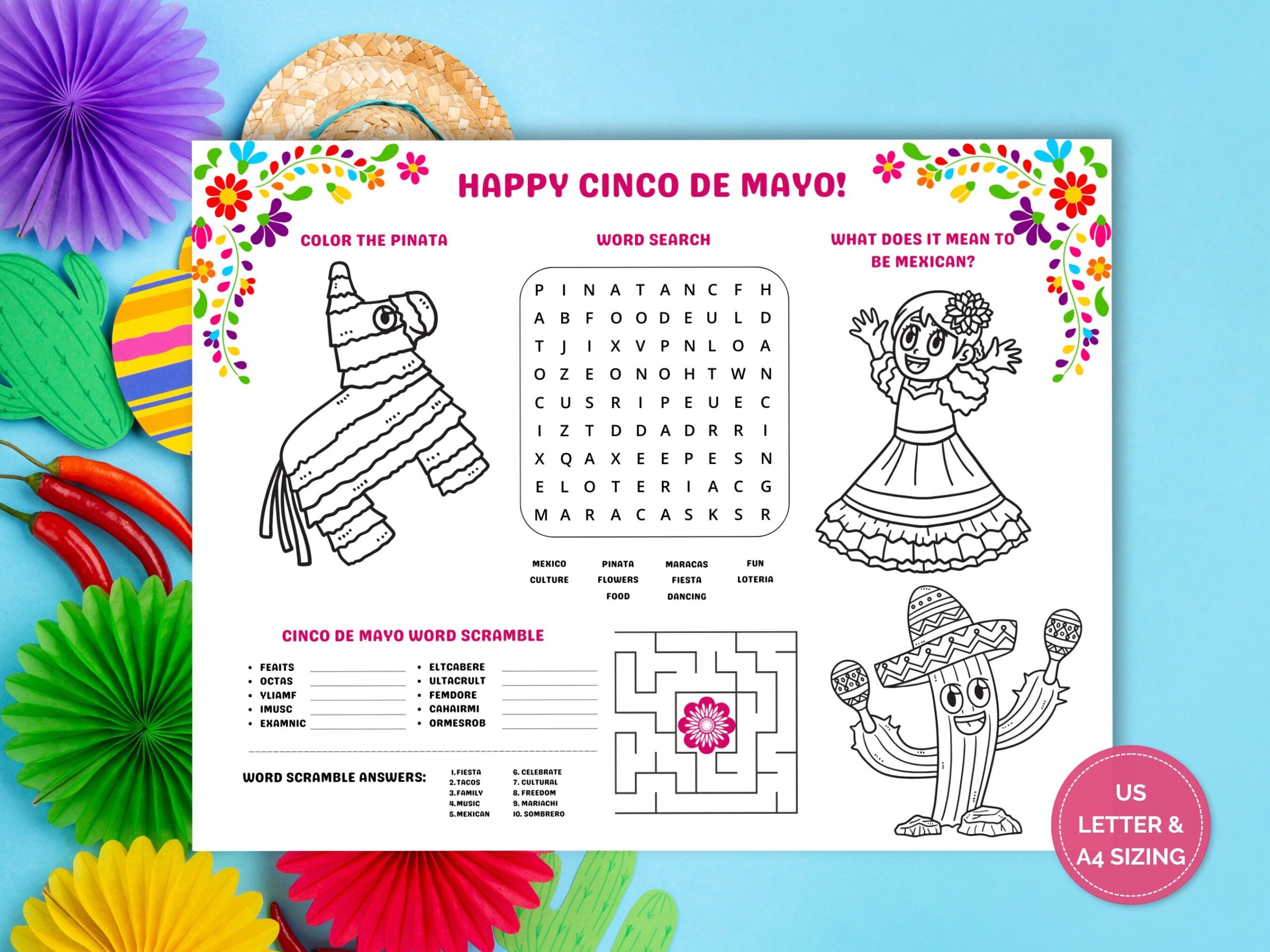 Printable Cinco De Mayo Activity Paper Placemat Fiesta Party Games Fun Etsy