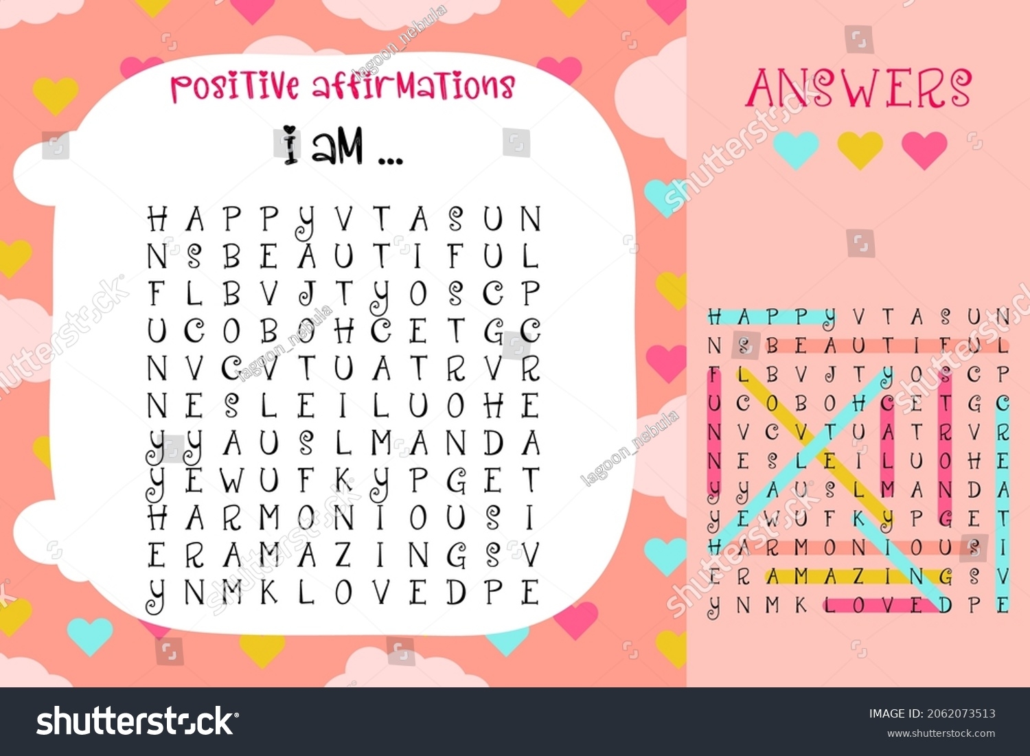 Positive Affirmations Word Search Puzzle Activity Stock Vector Royalty Free 2062073513 Shutterstock