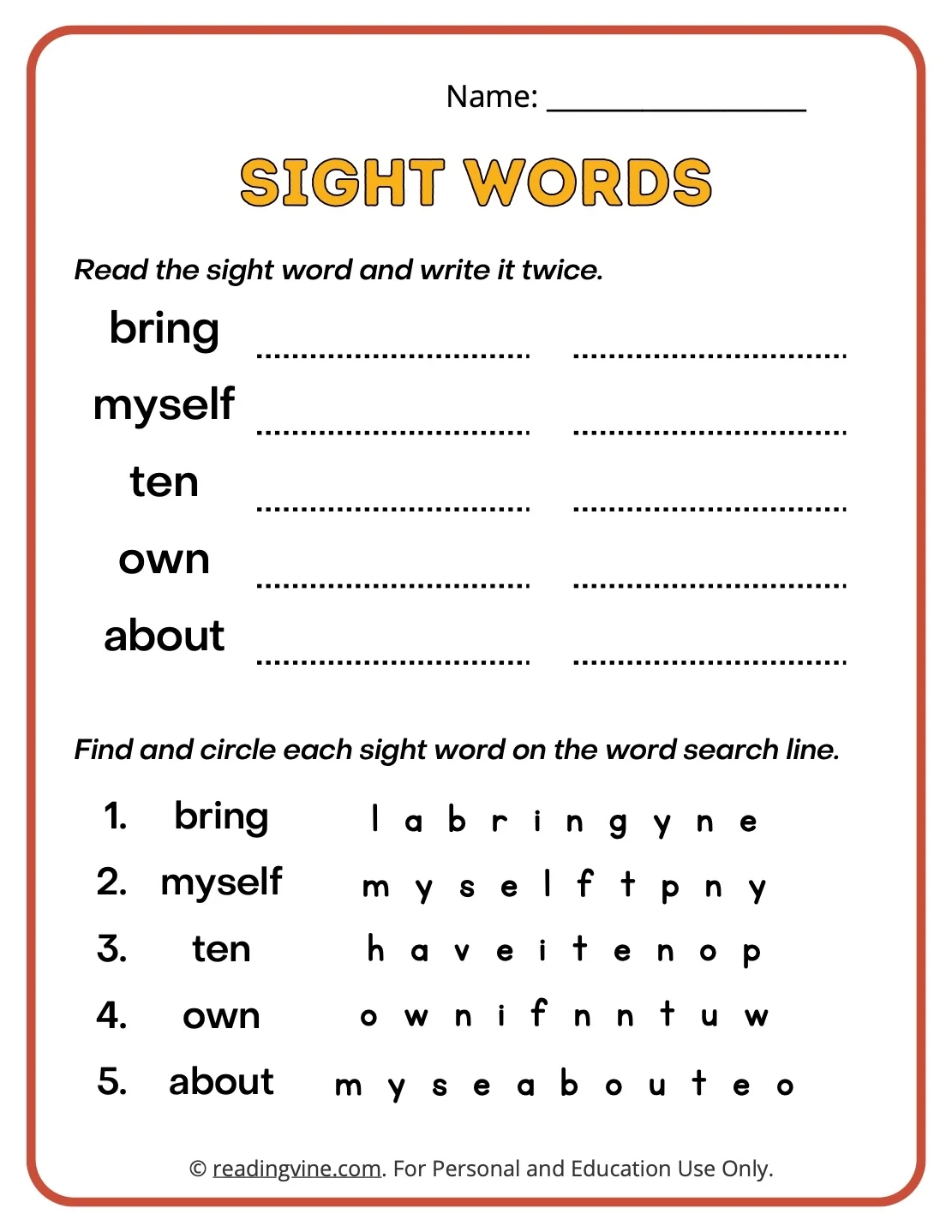 Third Grade Sight Words ReadingVine
