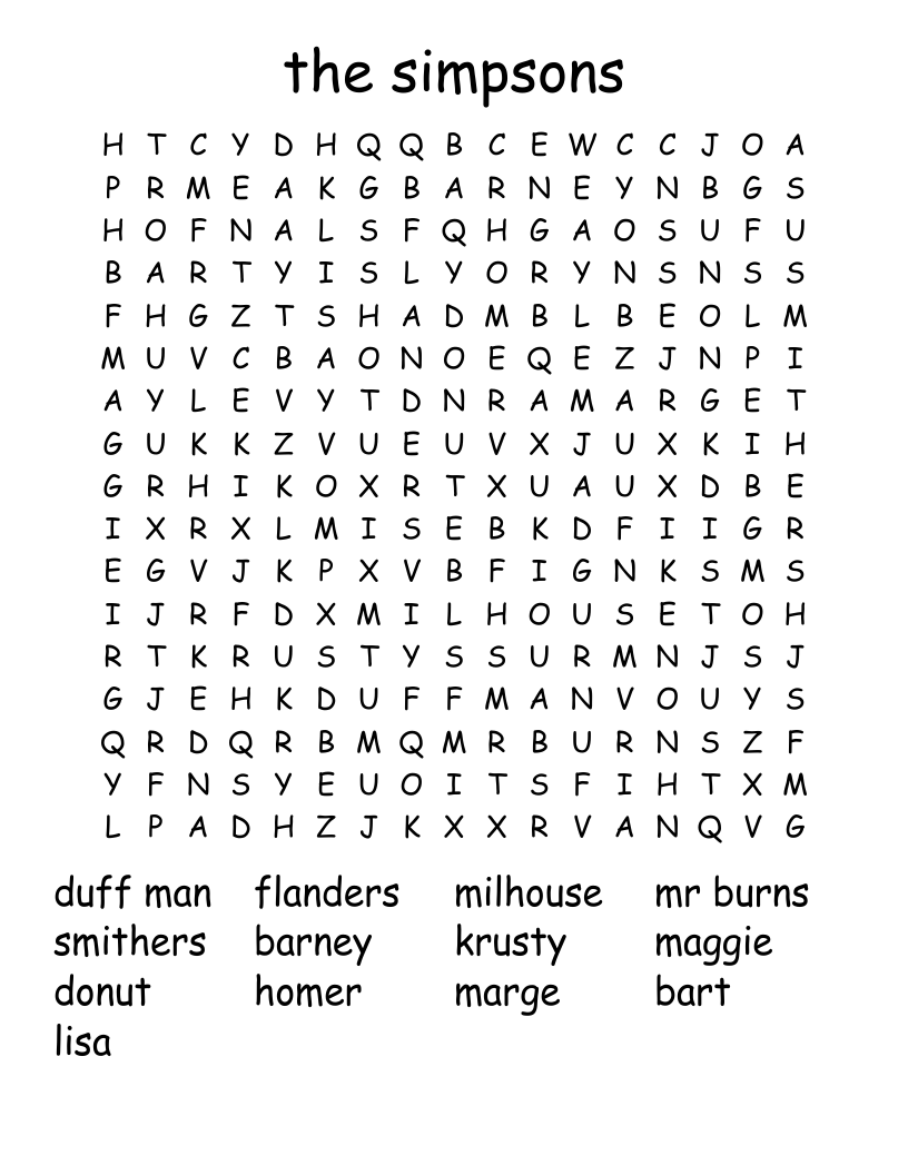 Are you a fan of The Simpsons? Do you enjoy word searches? If so, you’re in luck! We have a printable Simpsons Word Search for you to enjoy. Whether you’re a die-hard fan or just looking for a fun activity, this word search is sure to entertain.
