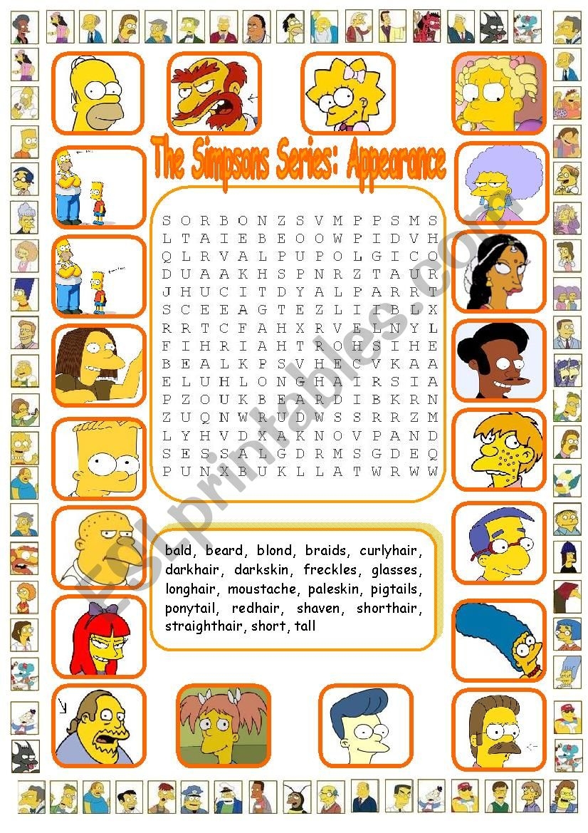 The Simpsons Series Appearance WordSearch Key Included ESL Worksheet By Ceballos