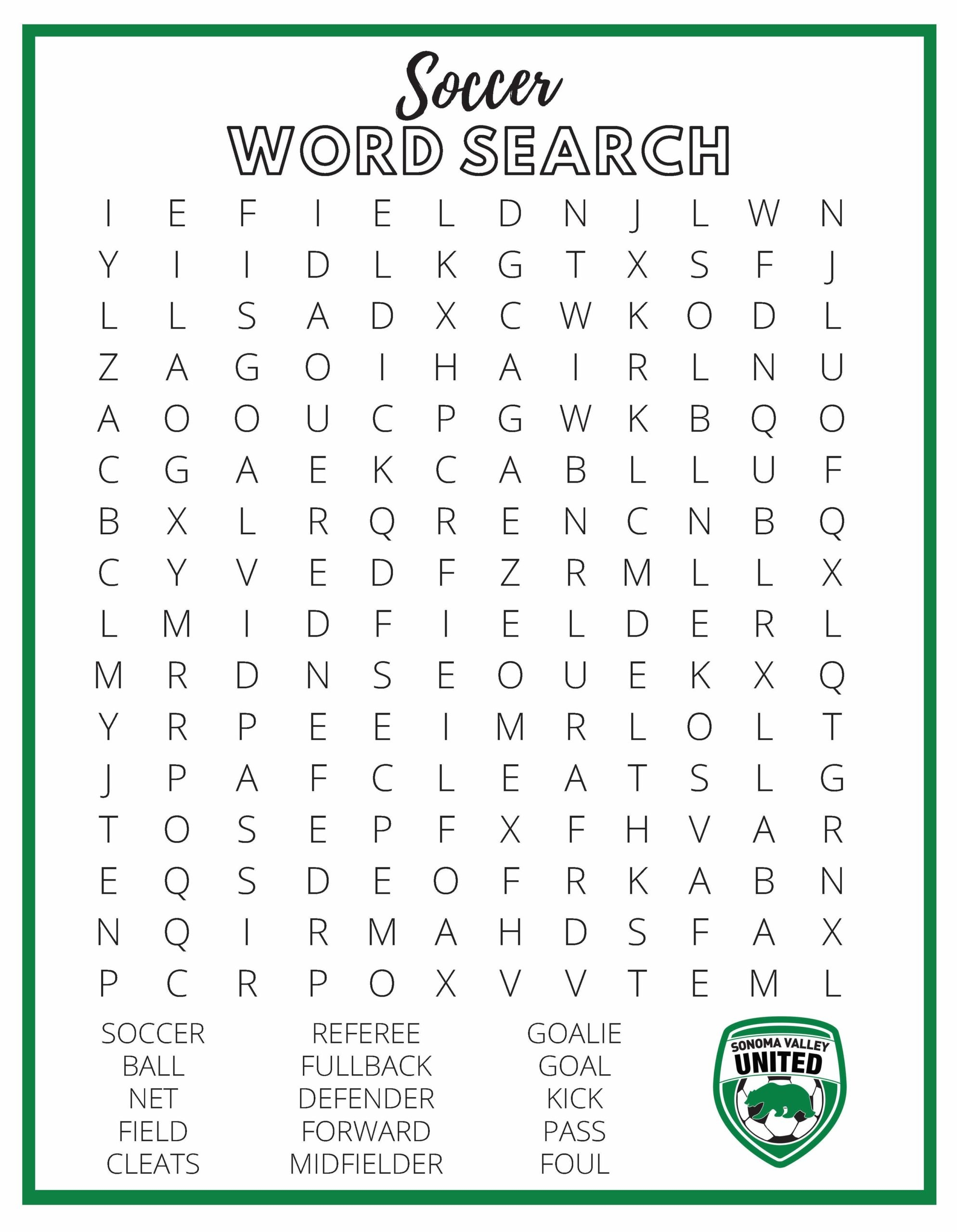 Soccer Word Search Sonoma Valley Youth Soccer Association