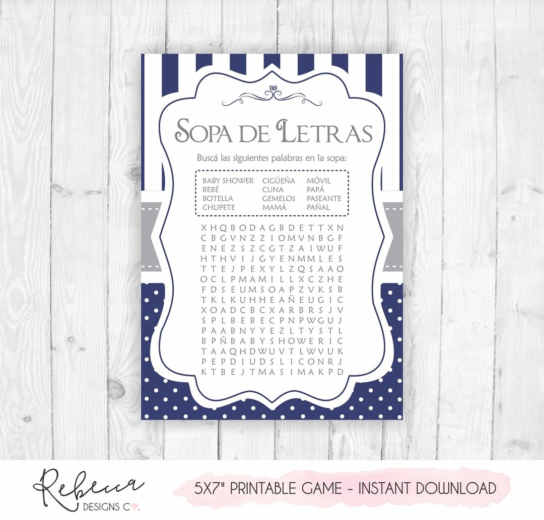 Wordsearch Game In Spanish Baby Shower In Spanish Espa ol Juegos Baby Shower Printable Espanol Sopa De Letras Azul Juego Blue Wordsearch 178 Etsy