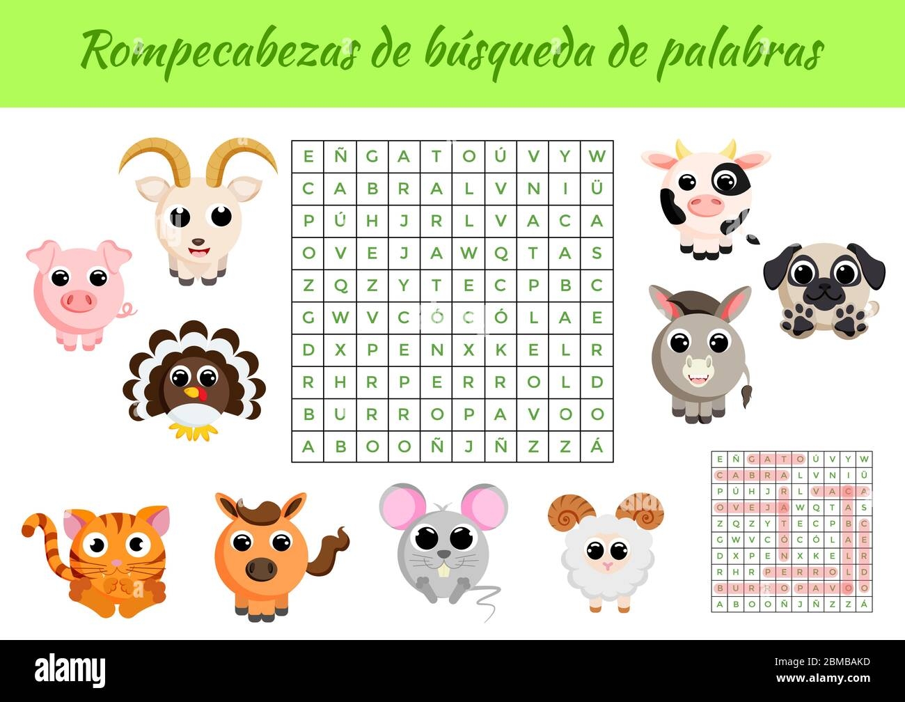 Spanish Word Search Puzzle For Kids With Answers Vector Template Download On Pngtree